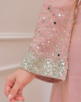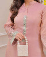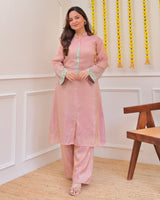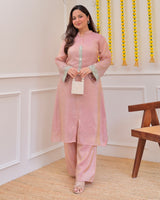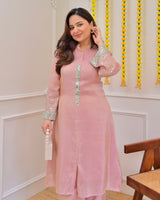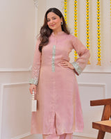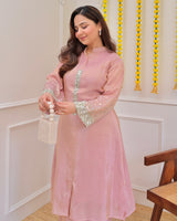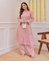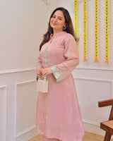 Baby Pink Premium Tissue Silk Handwork Kurta Set