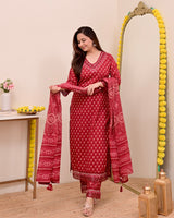 Step into effortless elegance with our Cotton Printed Suits, crafted for comfort and grace. Made from soft, breathable cotton, these suits keep you cool while the intricate thread embroidery adds a touch of timeless charm.