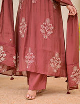 Mauve Muse Threadwork Mul Chanderi A Line Suit