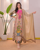 Noor Mahal Golden Beige Handwork Crepe Festive Suit