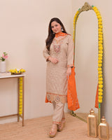 Sunkissed Ivory Chanderi Silk Handwork Festive Suit