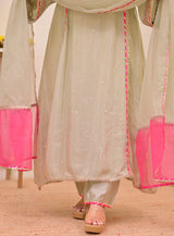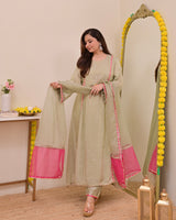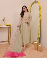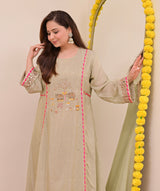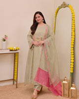 Sage Green Nazaakat Mul Chanderi Handwork A Line Suit