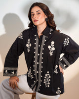 Our shirts, crafted from premium breathable fabric, each shirt features intricate embroidery and relaxed silhouettes perfect for elevating your casual chic. Whether you choose the bold black or serene whites, these statement pieces are made to move with you — from daywear to dusk.