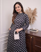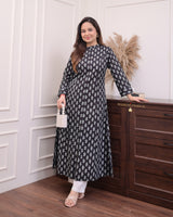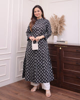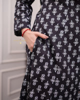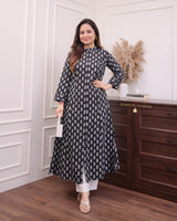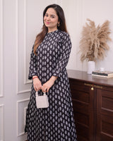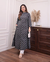 Black Floral A Line Cotton Kurta