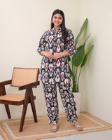 A must-have co-ord set in your wardrobe this season. It is very easy breezy, trendy and chic. Featuring Beautiful Floral Prints with comfortable silhouette in Pure Cotton.