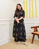 Black Minimal Floral Cotton Kurta Palazzo Set