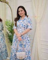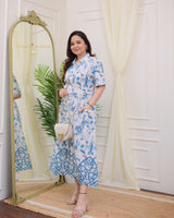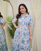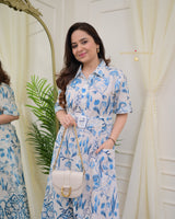 Featuring easy breezy dresses in light weighted pure cotton fabric. It is decorated with beautiful buttons, floral prints and belt. A must’ve for your daily rituals. Weather it’s a brunch date or movie night, you can opt this as your go to dress.