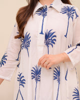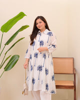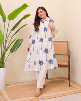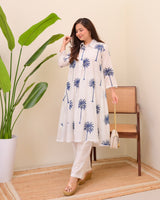 Blue Palm Breeze Mul Cotton A Line Kurta Set