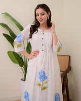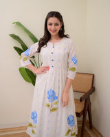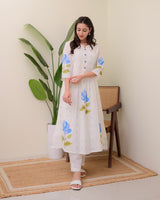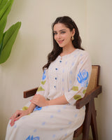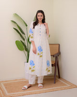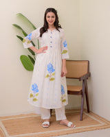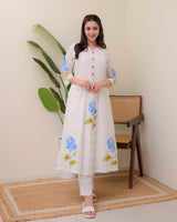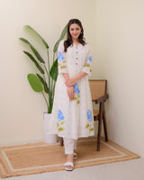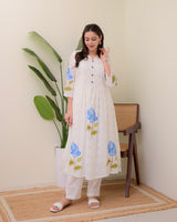 Blue Rose Pintex Mul Cotton A Line Kurta Set