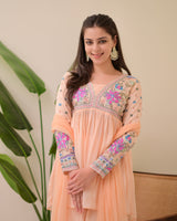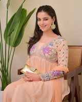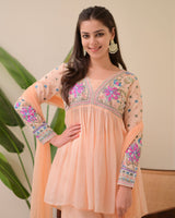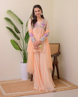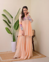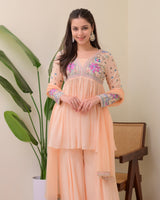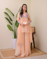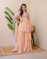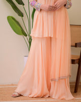 Celebrate in style with our Ethereal Blush Pink Sharara Set! The delicate handwork and flowy silhouette make it a timeless choice for weddings and festivals!