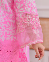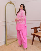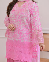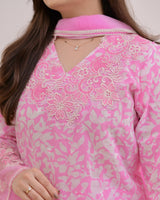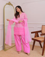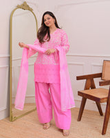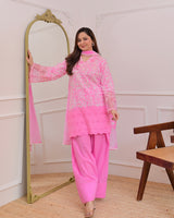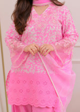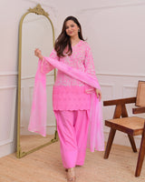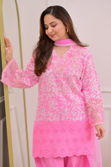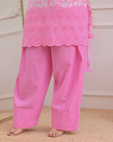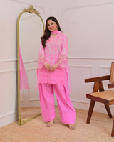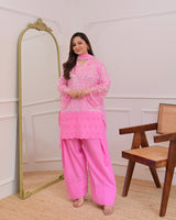 Flamingo Pink Threadwork Cotton Farshi Shalwar Suit