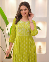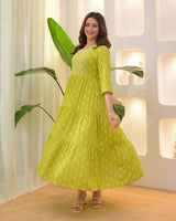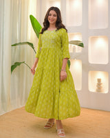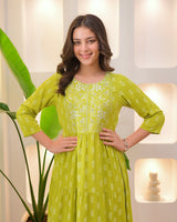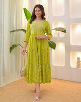 Featuring easy breezy soft cotton A-line Embroidered dresses in light weighted fabric. It is decorated with beautiful thread embroidery and amazing floral prints.Â
