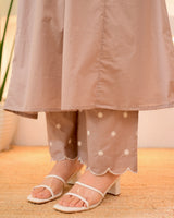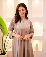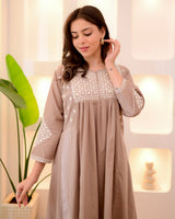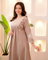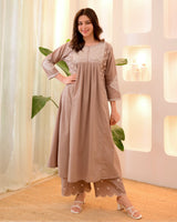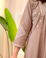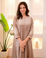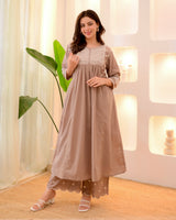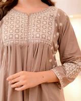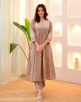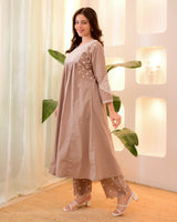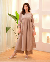 Hazelnut Threadwork A Line Cotton Kurta Set