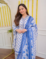 Color: Ivory, Blue, Floral Prints with Mirror Work