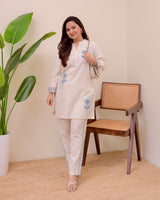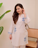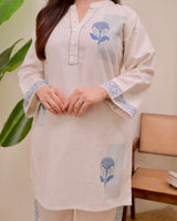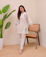 Ivory Blue Kantha Sequin Cotton Co-ord