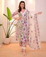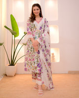 Wrap yourself in elegance this Season with our Pastels Cotton Suit Set, featuring intricate thread embroidery on neckline, sleeves, bottom and floral prints all-over. It Perfect for celebrating any upcoming festivities.