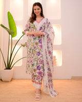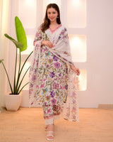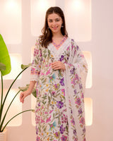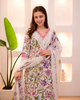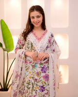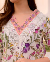 Ivory Floral Lace Pakistani Cotton Suit