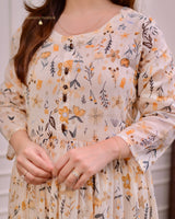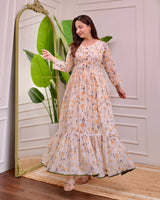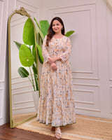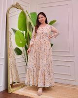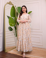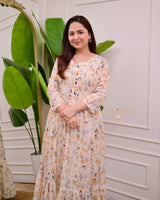 Ivory Floral Pearl Work Mul Cotton A Line Maxi Dress