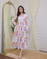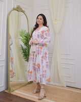 Featuring easy breezy dresses in light weighted pure cotton fabric. It is decorated with beautiful buttons, floral prints and belt. A must’ve for your daily rituals. Weather it’s a brunch date or movie night, you can opt this as your go to dress.