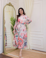 Featuring easy breezy dresses in light weighted cotton linen fabric. It is decorated with beautiful buttons, floral prints and belt. A must have for your daily rituals. Weather it's a brunch date or movie night, you can opt this as your go to dress.