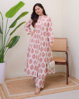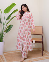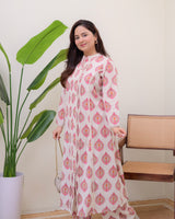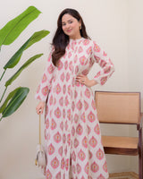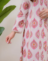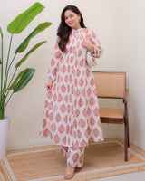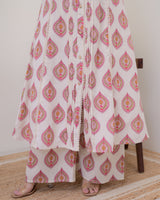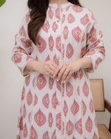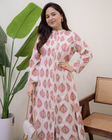 Ivory Pink Paisley Pintex Cotton A Line Kurta Set