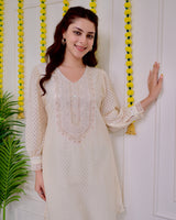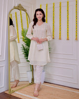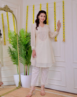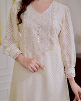 Ivory Schiffli Threadwork Pakistani Co-ord