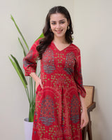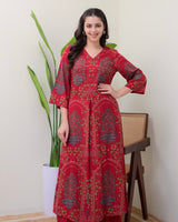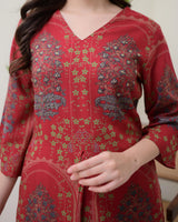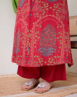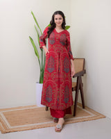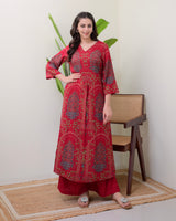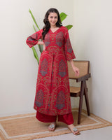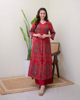 Maroon Floral Embroidered Cotton A Line Kurta Palazzo Set