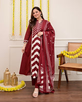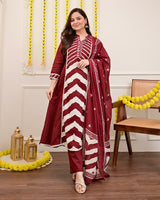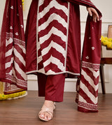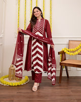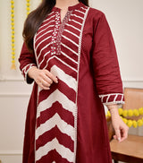 Maroon Red A Line Premium Cotton Suit