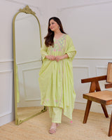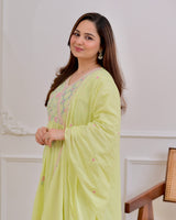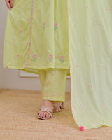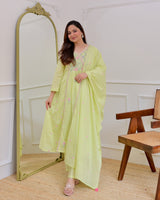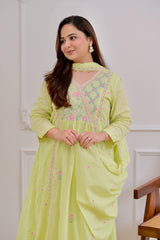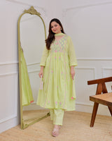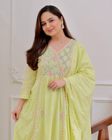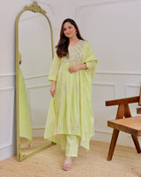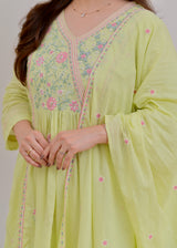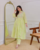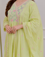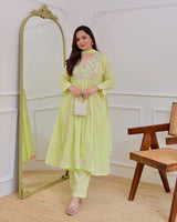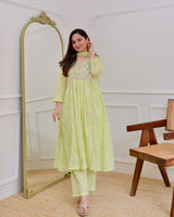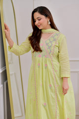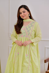 Mint Thread Embroidered Premium Mul Cotton A Line Suit