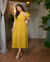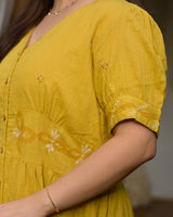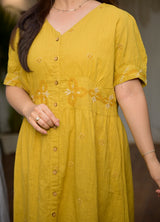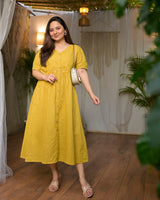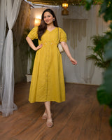 Mustard Muse Threaded Cotton A Line Dress