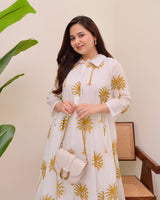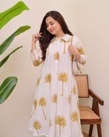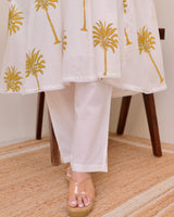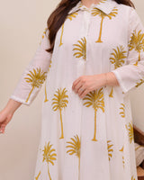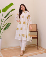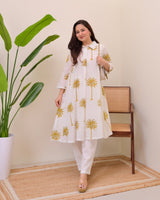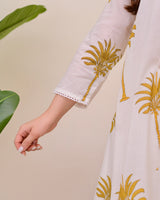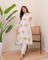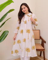 Mustard Palm Breeze Mul Cotton A Line Kurta Set