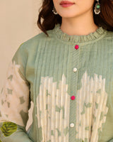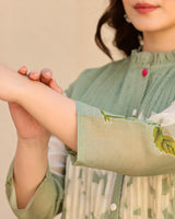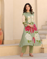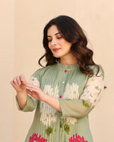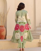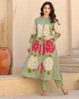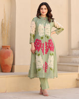 Olive Green Bloom Pintex Mul Cotton A Line Kurta Set