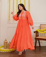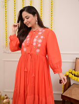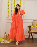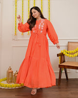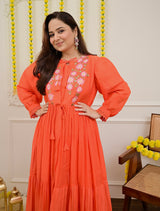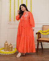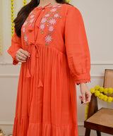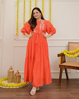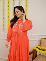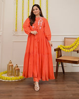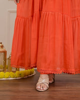 Orange Handwork Mul Chanderi A Line Kurta Set