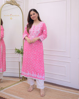 Chikankari outfits are the love of every woman. These elegant Chikankari Kurtas are perfect for everyday wear and festive gatherings. It is made from Cotton fabric, this summer essential features intricate Chikankari Embroidery.