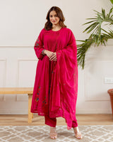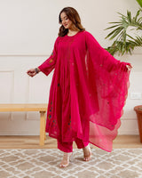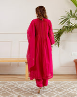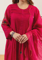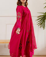 Pink Noor A Line Threadwork Mul Chanderi Suit