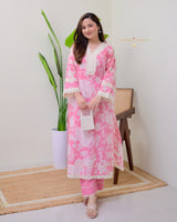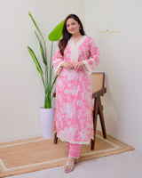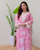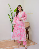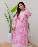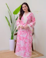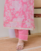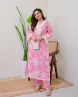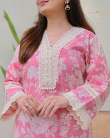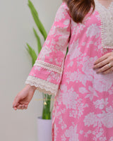 Crafted From Luxuriously Premium Cotton, This Ensemble Features Intricate Lace Work On The Neck, Hem And Sleeves, And Floral Prints All-over, Giving It A Pakistani Style Perfect For Festive Wear Or Any Outings.