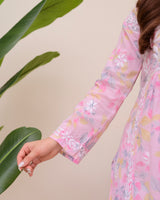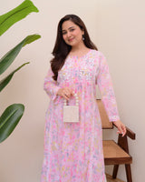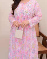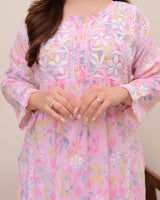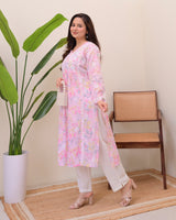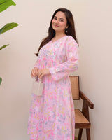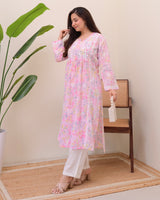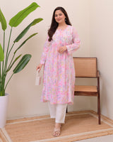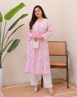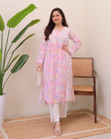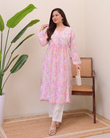 Pink Pastel Flora Mul Cotton Chikankari Kurta