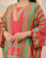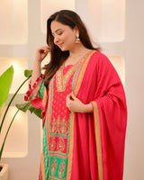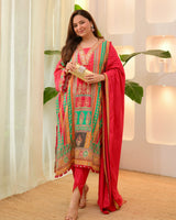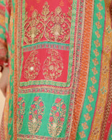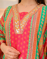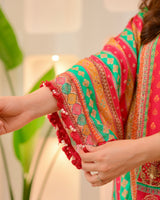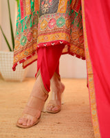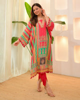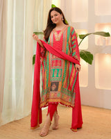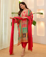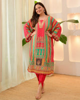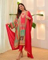 Red Rani Patch Handwork Tulip Muslin Kaftan Suit