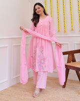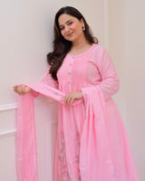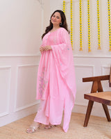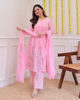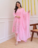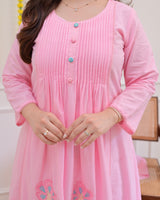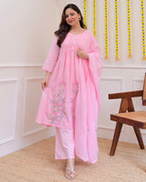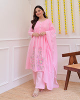 Step into effortless elegance with our Mul Cotton A-line Suits, crafted for comfort and grace. Made from soft, breathable mul cotton, these suits keep you cool while the intricate thread embroidery adds a touch of timeless charm.