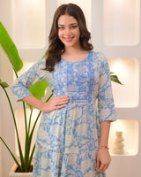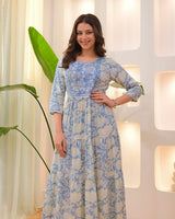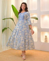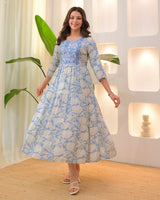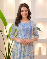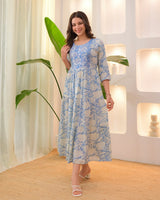 Powder Blue Embroidered Cotton A Line Dress