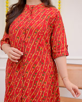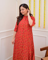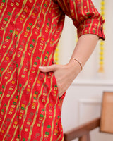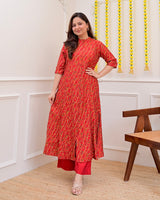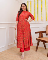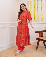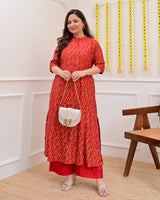 Red Bandhani Cotton Silk Kurta Palazzo Set