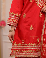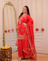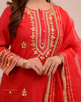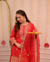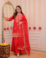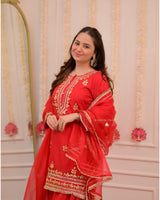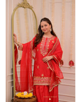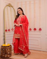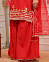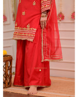 Red Gota Premium Chanderi Silk Festive Sharara Set