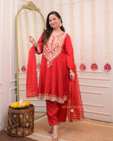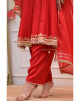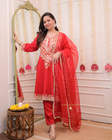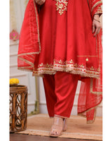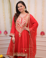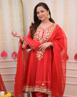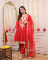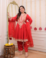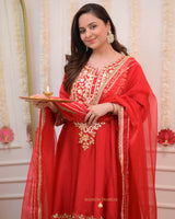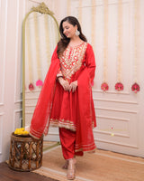 Red Gota Work Premium Festive Silk Anarkali Suit