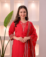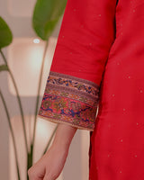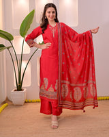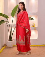 Ruhani Red Threadwork Cotton Palazzo Suit