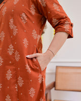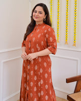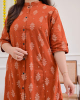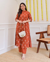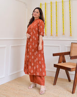Rust Petals Cotton Kurta Palazzo Set