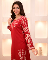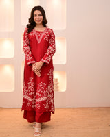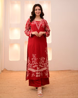 Scarlet Petals Cotton A Line Kurta Palazzo Set