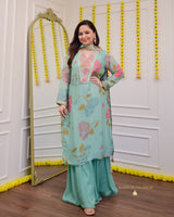 Sea Green Floral Gota Handwork Premium Sharara Set