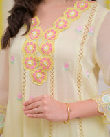 Wrapped in the elegance of premium Chiffon Crush suits adorned with intricate hand embroidery all-over these suits are celebration of timeless elegance.
