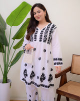 Chikankari outfits are the love of every woman. This elegant Chikankari Kurta Palazzo Set is perfect for everyday wear and festive gatherings. It is made from Mul Cotton fabric, this summer essential features intricate Chikankari Embroidery.
