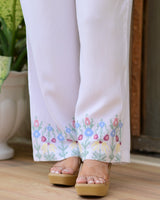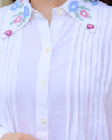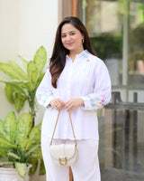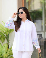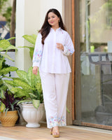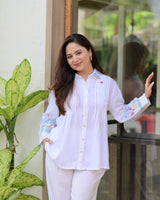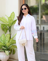 White Threadwork Collar Cotton Co-ord